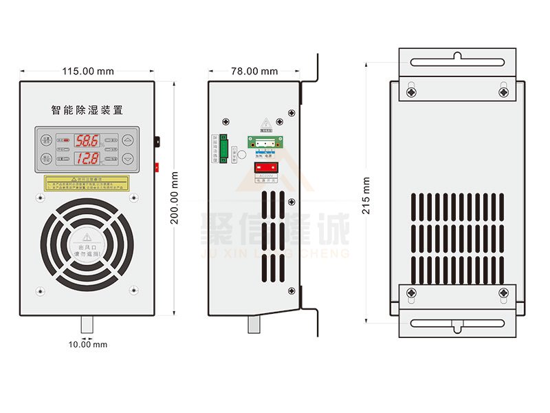 10、型號帶“T”的具有加熱功能,當檢測到箱體環(huán)境溫度低時,除濕裝置內(nèi)部的風機和外部加熱器啟動工作。