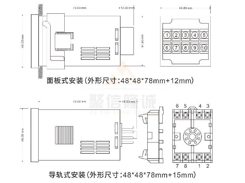安裝方式:導(dǎo)軌式安裝,面板式安裝(開孔尺寸:45X45)